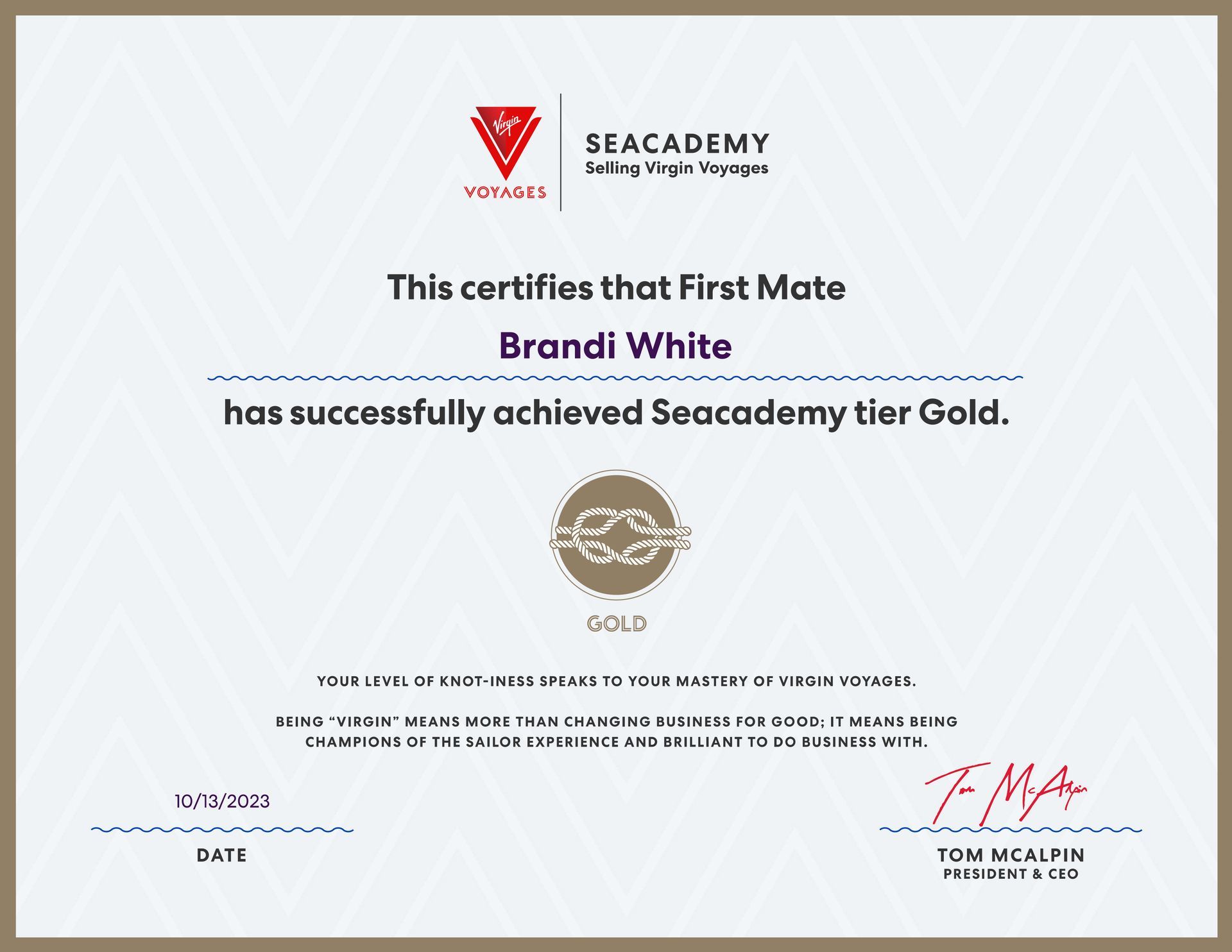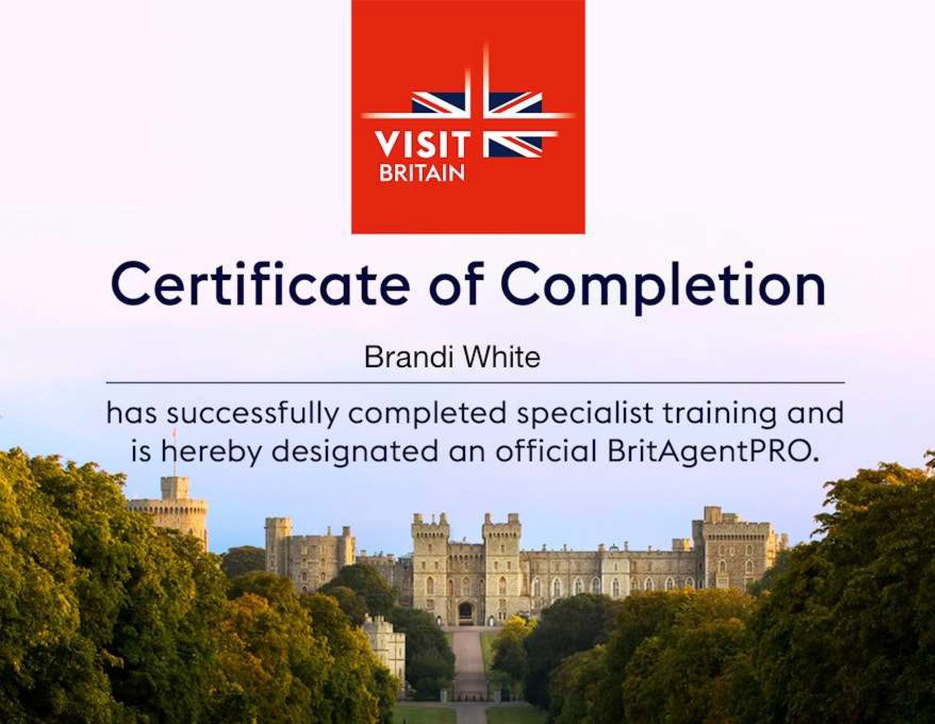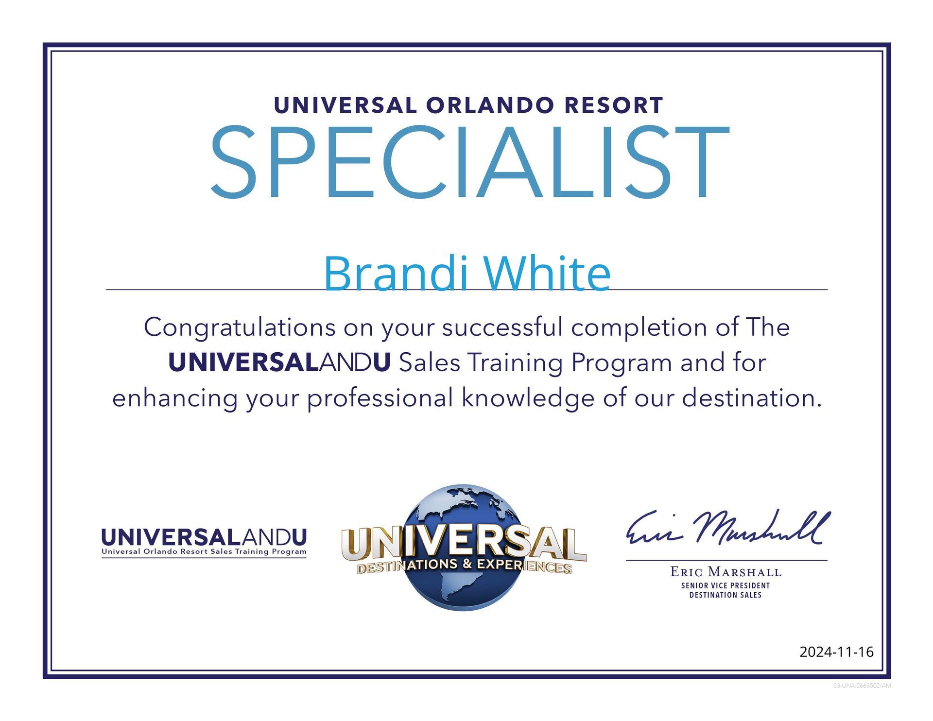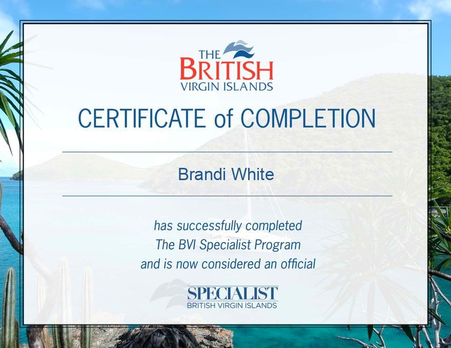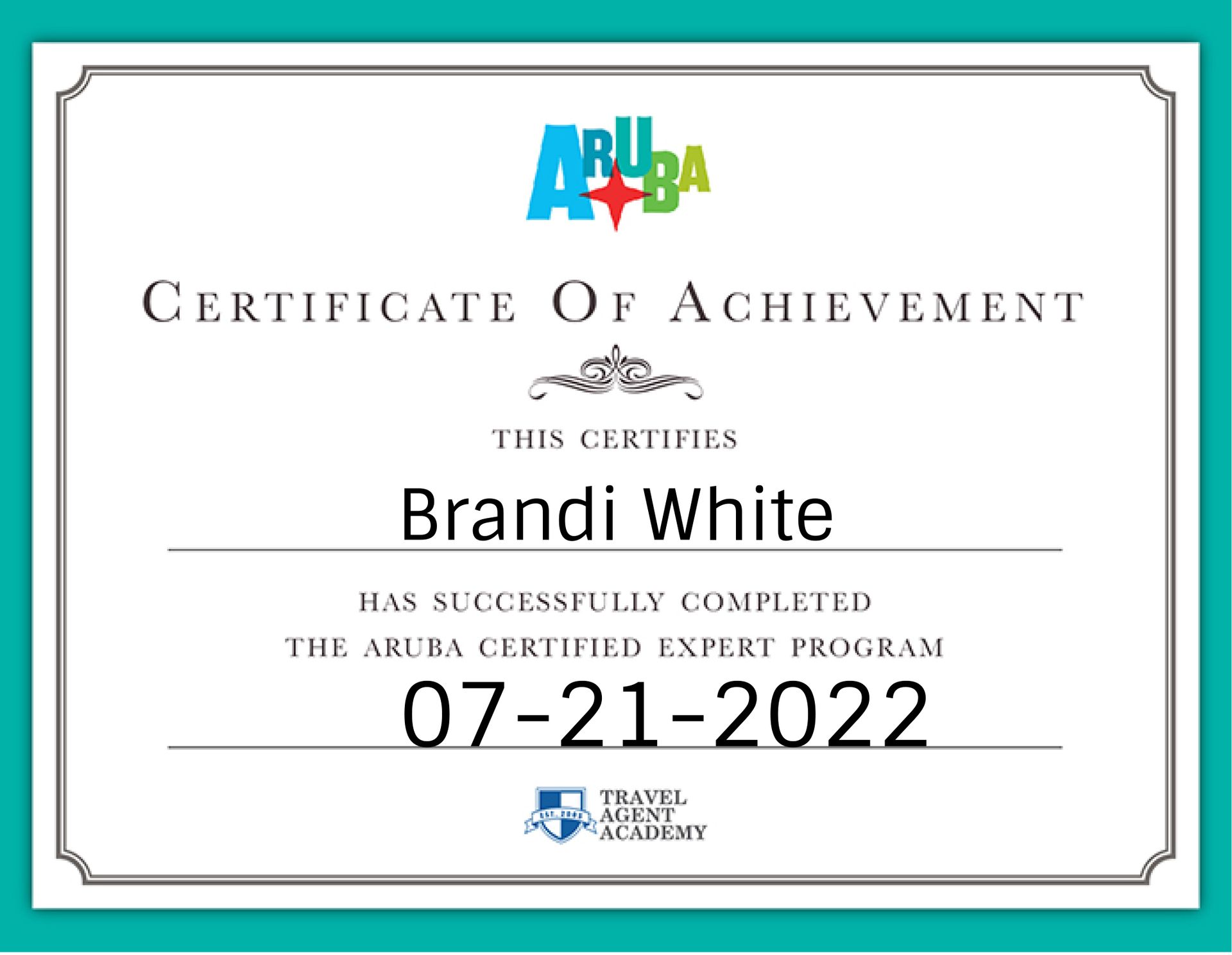 Specialist Certificates-Antigua Specialist, Hyatt Resorts Specialist, Jamaica Specialist, Sandals Specialist.